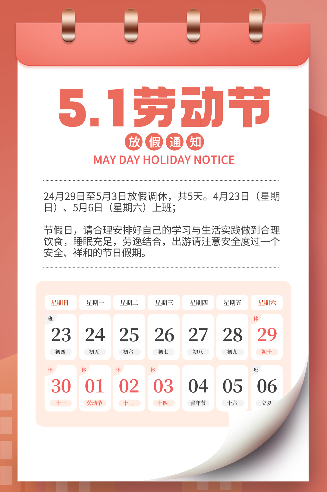 五一節(jié)放假通知